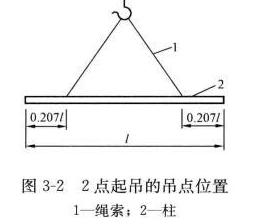 2、如果采用2個(gè)吊點(diǎn)時(shí),吊點(diǎn)距物體兩端的距離為0.207l,如圖3-2所示。